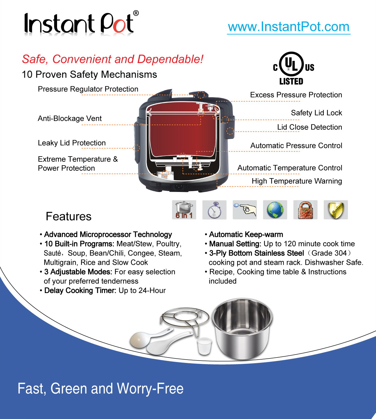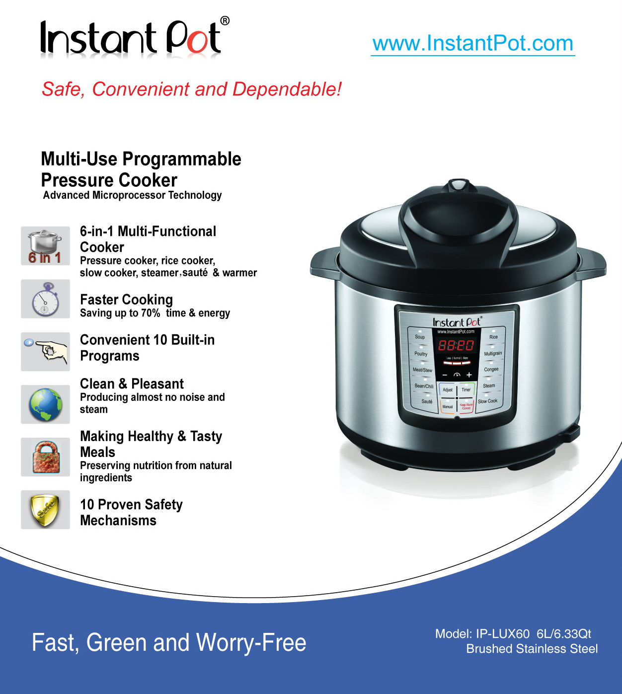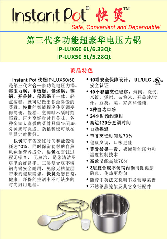| Instant Pot 快煲IP-LUX60/50是第三代六合一多功能电压力锅。 |